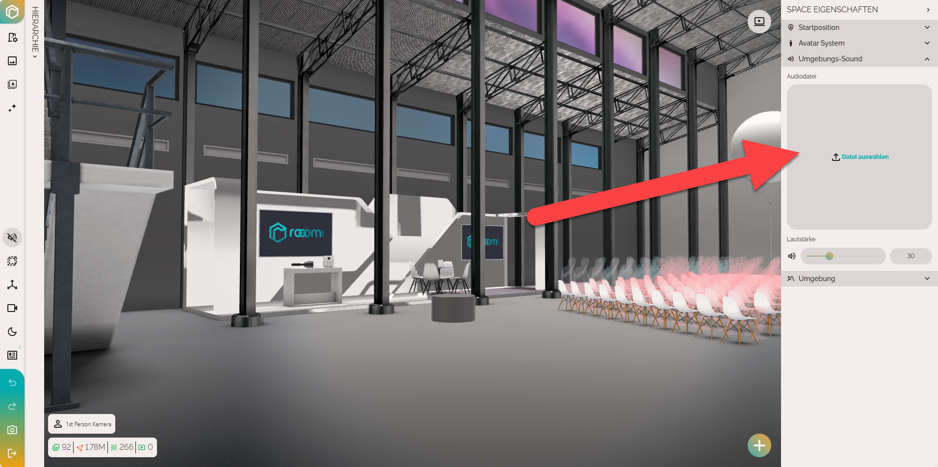 Erfahre, wie du schnell und einfach Umgebungsgeräusche im Space Editor einstellst.