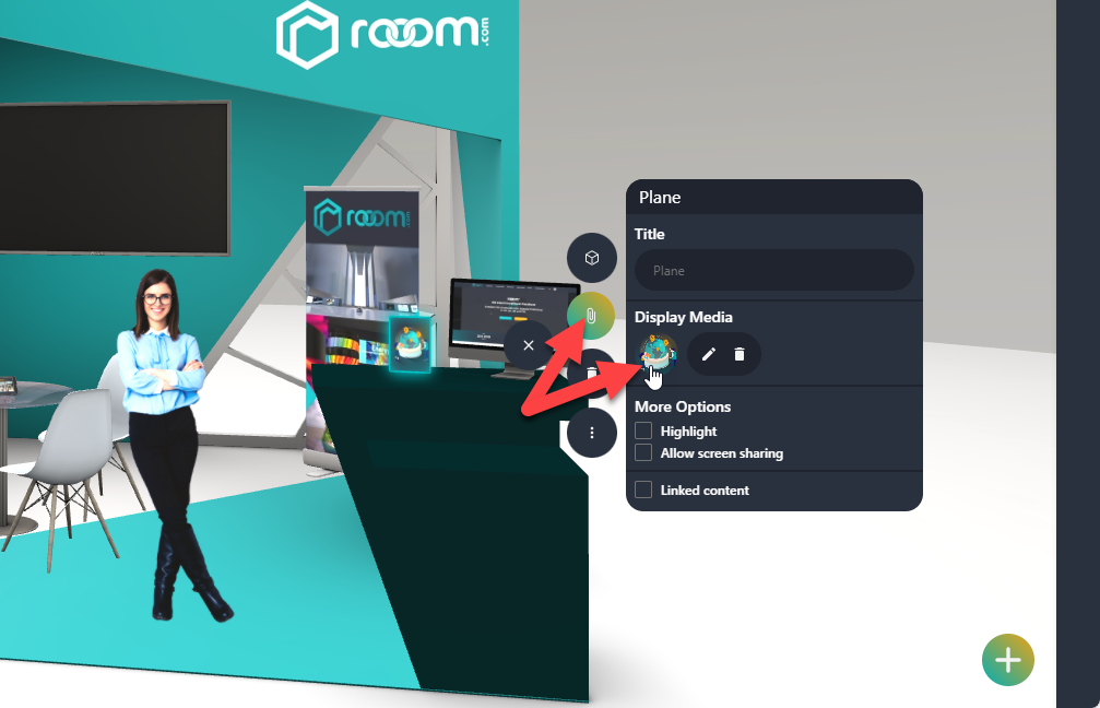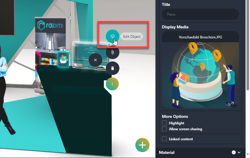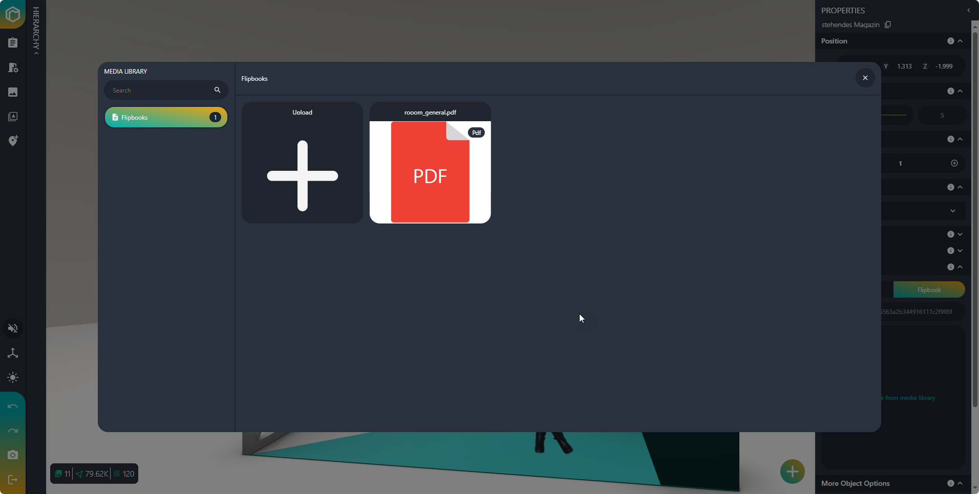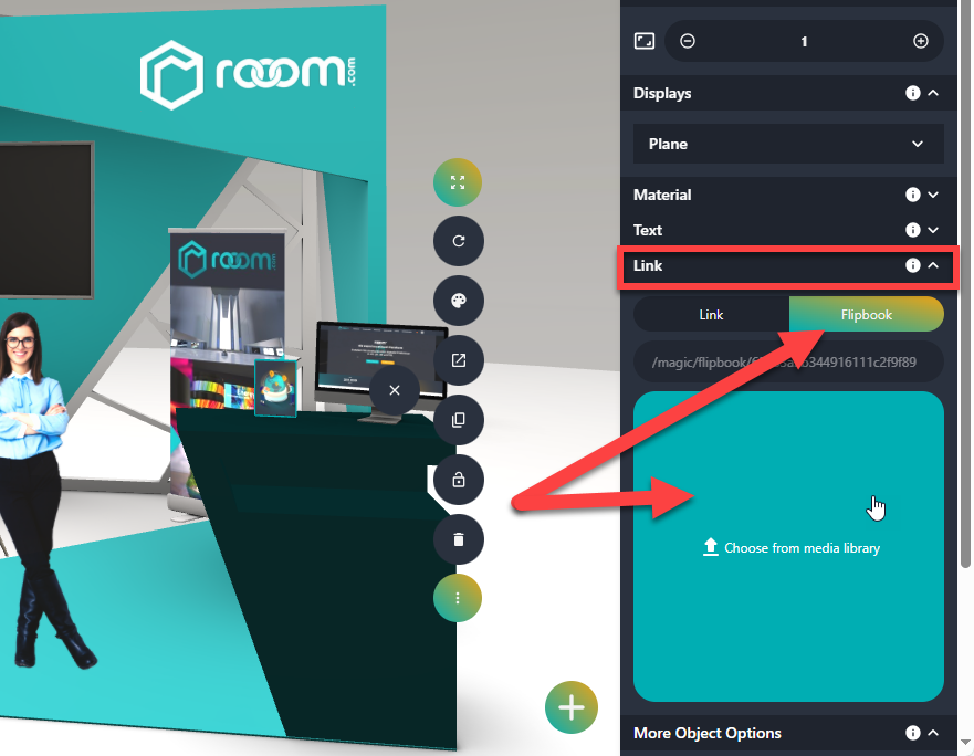 You can link flipbooks to your objects so that your visitors can read PDF files in the 3D space.