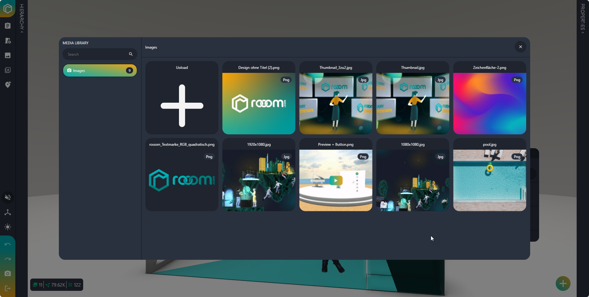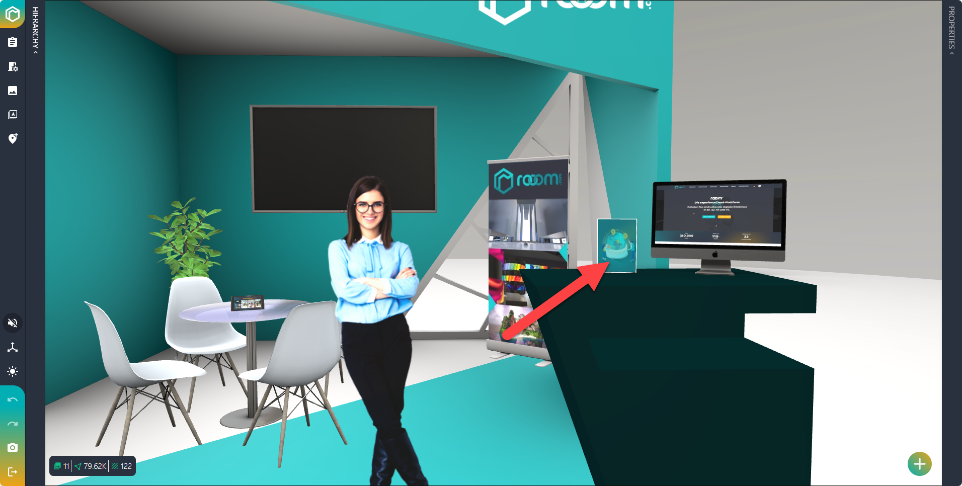 - Click on the top button in the Quick Menu, Edit Object, and open the properties menu on the right side of the Space Editor.
