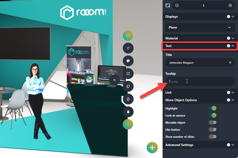 - Under Text and Tooltip, you can now enter text that will be displayed when a user hovers over the object with the mouse.