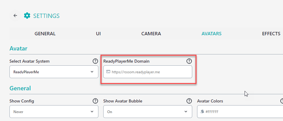 - Under the Avatars tab, you will find a field for the Ready Player Me subdomain.