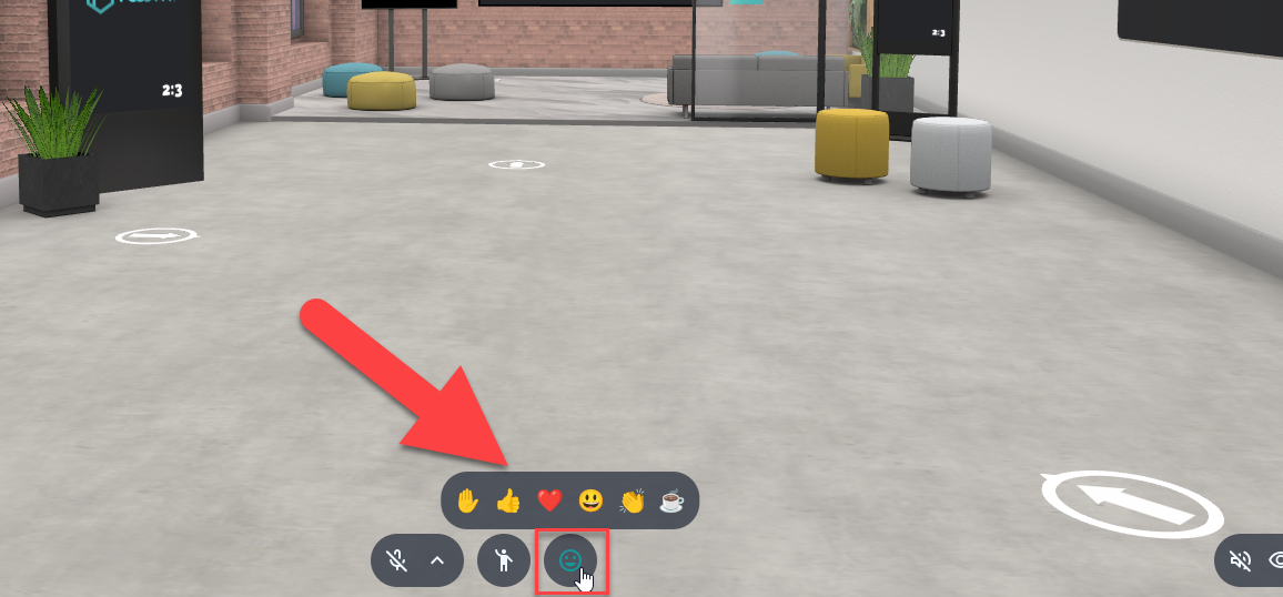 Reactions are small symbols you can use in the Space Viewer to communicate nonverbally. They appear directly in the virtual space and are visible to all participants. For example, you can give a ๐ to show agreement or ๐ to applaud without interrupting the flow of conversation.