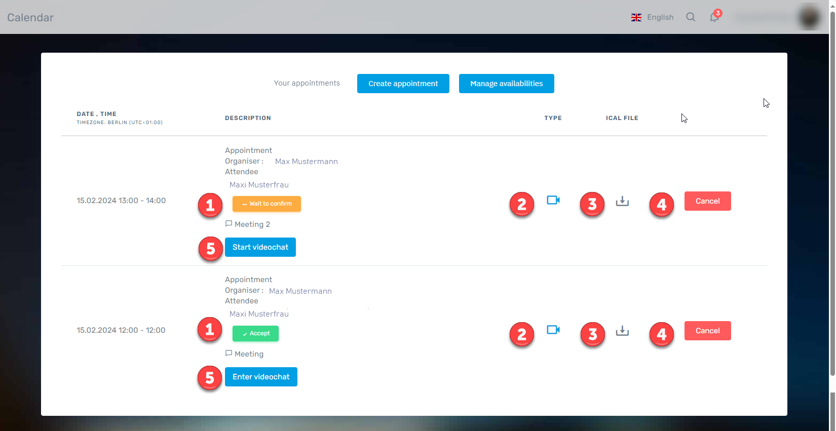 4 - Here you will also find the option to accept appointment requests or to cancel appointments that have already been confirmed. The respective person will then receive a notification.